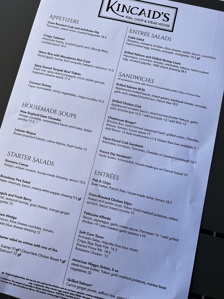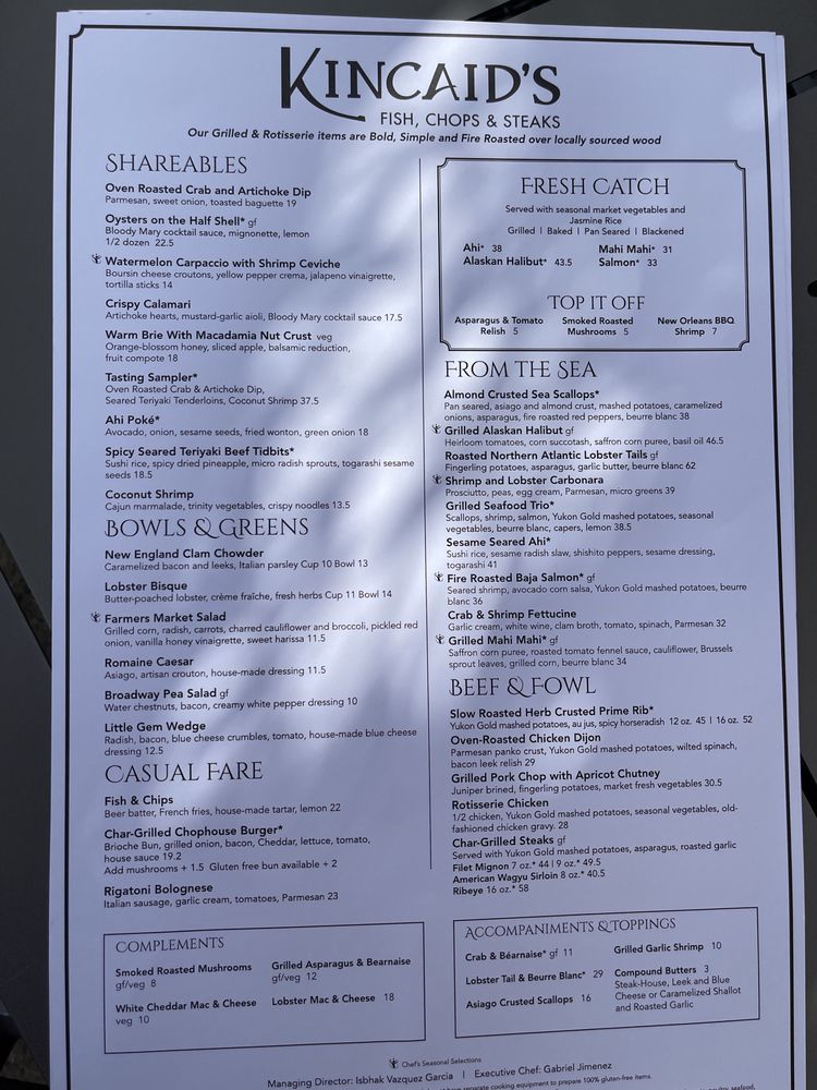 Welcome to Kincaid's Fish, Chop & Steakhouse, a culinary gem nestled in Burlingame, CA. This establishment expertly fuses American seafood and steakhouse fare, catering to diverse palates and dietary preferences. With a menu that boasts fresh options like Grilled Salmon BLTA and Chophouse Burger, diners can relish a delightful assortment of flavors.